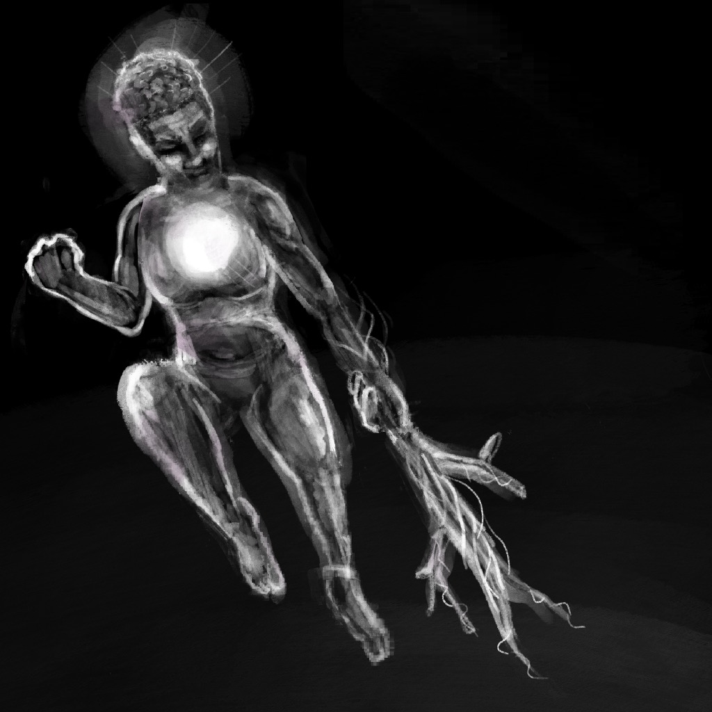 Drusilla is a dragon…literally. Haha. But seriously speaking, Dru grew up reading anything fantasy fiction oriented they could get their hands on. They’ve always had a love for animals due to the ease of the bonds Dru formed with them in comparison to other humans. Dru has grown tremendously by meeting and building a wider community of like-minded individuals focused on creating a better world. “We focus on what we can do for ourselves and one another. Each one teach one. Children walking each other home, ect ect , beautiful sayings like that.” Dru’s current creative passions are impromptu spoken word, poetry, painting, drawing, singing, and being in nature to tie it all together. The river is their “bestie”, relating to the constant state of flux, flow, and change. “However, I have a cat named Havoc that I have full blown conversations with, and a Dragon tattoo on my left arm so… I guess some things never change.”
